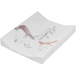 El hueco de dos cuñas proporciona un acolchado suave y una sujeción segura al cambiar pañales. Las cuñas laterales aseguran que el bebé esté seguro incluso en mesas de cambio estrechas. La lámina libre de ftalatos en la amorosamente diseñada Design es práctica y fácil de limpiar.