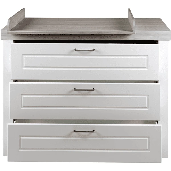 El cambiador roba con tapa cambiadora es un verdadero todoterreno y le servirá durante muchos años. El cambiador estable se puede utilizar como asiento elevado para su hijo de jardín de infancia, para que pueda ayudarle a vestirse fácilmente en una posición cómoda de pie. Más adelante, el mueble cambiador se convertirá en una cómoda en el salón o en el cuarto de los niños.