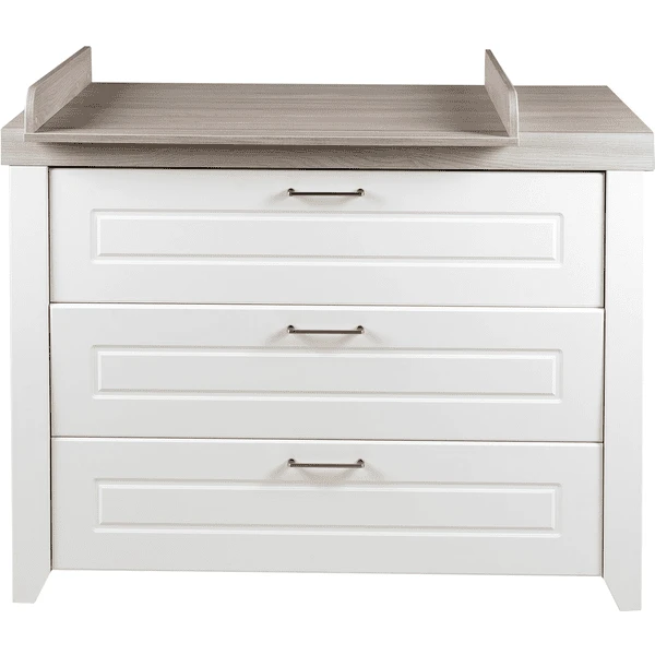 El cambiador con elegantes asas de color plateado Metal y sin tornillos visibles es una de nuestras versiones más amplias. Con otros muebles infantiles de la serie «Felicia», puedes crear una habitación infantil o de bebé completa y con estilo. El cambiador se ha desarrollado en Alemania y cumple las normas de seguridad vigentes según la norma EN 12221 – 1+2:2008 + A1:2013. El cambiador «Felicia» se ha fabricado en la UE y es fácil de montar.